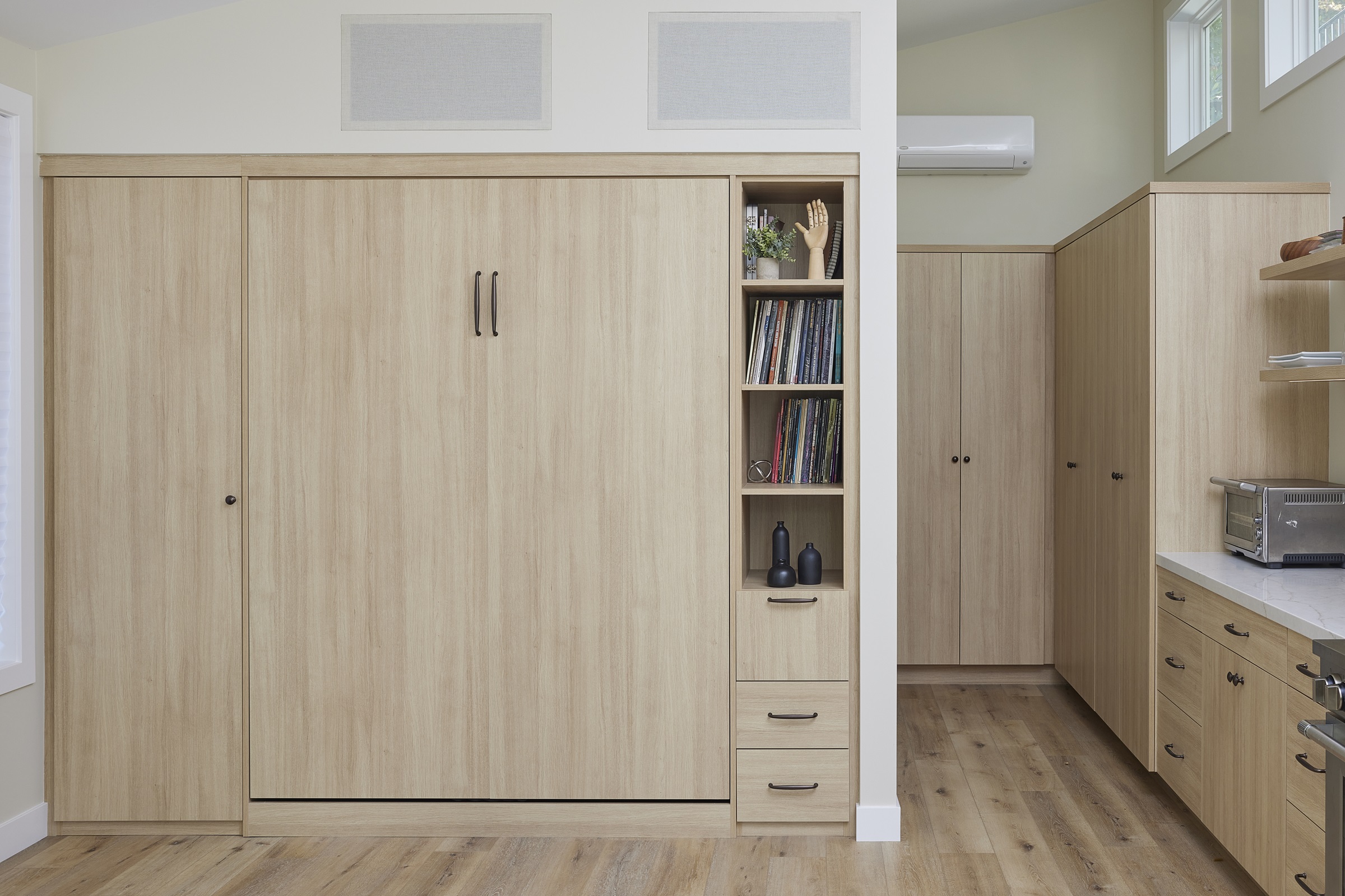 Downsizing Palo Alto Homeowners Use Murphy Beds to Create Multipurpose Living Rooms